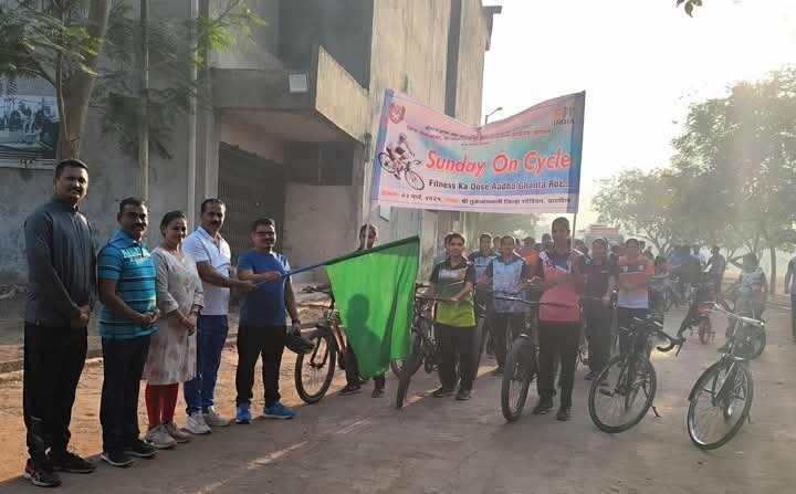 धाराशिव – नागरिकांच्या तंदुरुस्तीसाठी केंद्र शासनाच्या “फिट इंडिया” मोहिमेअंतर्गत ” प्रत्येक रविवारी सायकलवर ” (“Every Sunday on Cycle”) हा उपक्रम राबविण्यात येत आहे.या उपक्रमाची दखल पंतप्रधानांनी “मन की बात” कार्यक्रमात घेतली असून,देशभरात या मोहिमेला चांगला प्रतिसाद मिळत आहे.या उपक्रमांतर्गत जिल्हा क्रीडा अधिकारी कार्यालयाच्या वतीने ” प्रत्येक रविवारी सायकलवर ” या सायकल रॅलीचे आयोजन करण्यात आले.