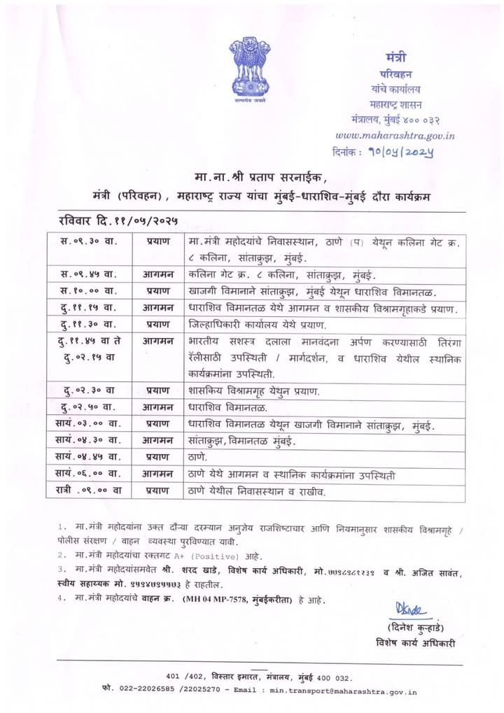 पालकमंत्री एक दिवसीय जिल्हा दौऱ्यावर त्यांचा असा असेल धाराशिव जिल्हा दौरा हे आहेत दिवसभराचे कार्यक्रम