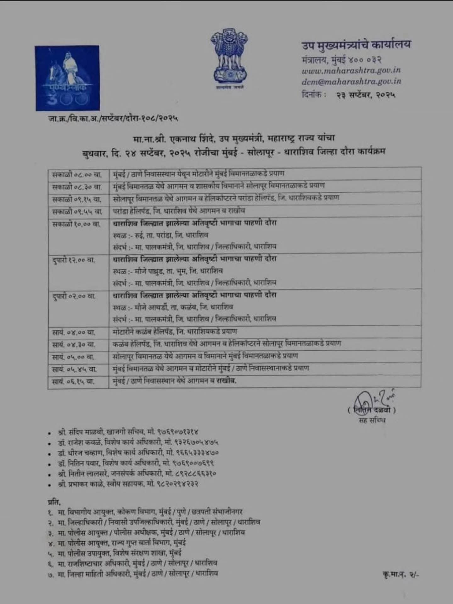 धाराशिव – उपमुख्यमंत्री एकनाथ शिंदे उद्या धाराशिव दौऱ्यावर परंडा व भूम तालुक्यातील पूरपरिस्थिती मुळे झालेल्या नुकसानीची करणार पाहणी