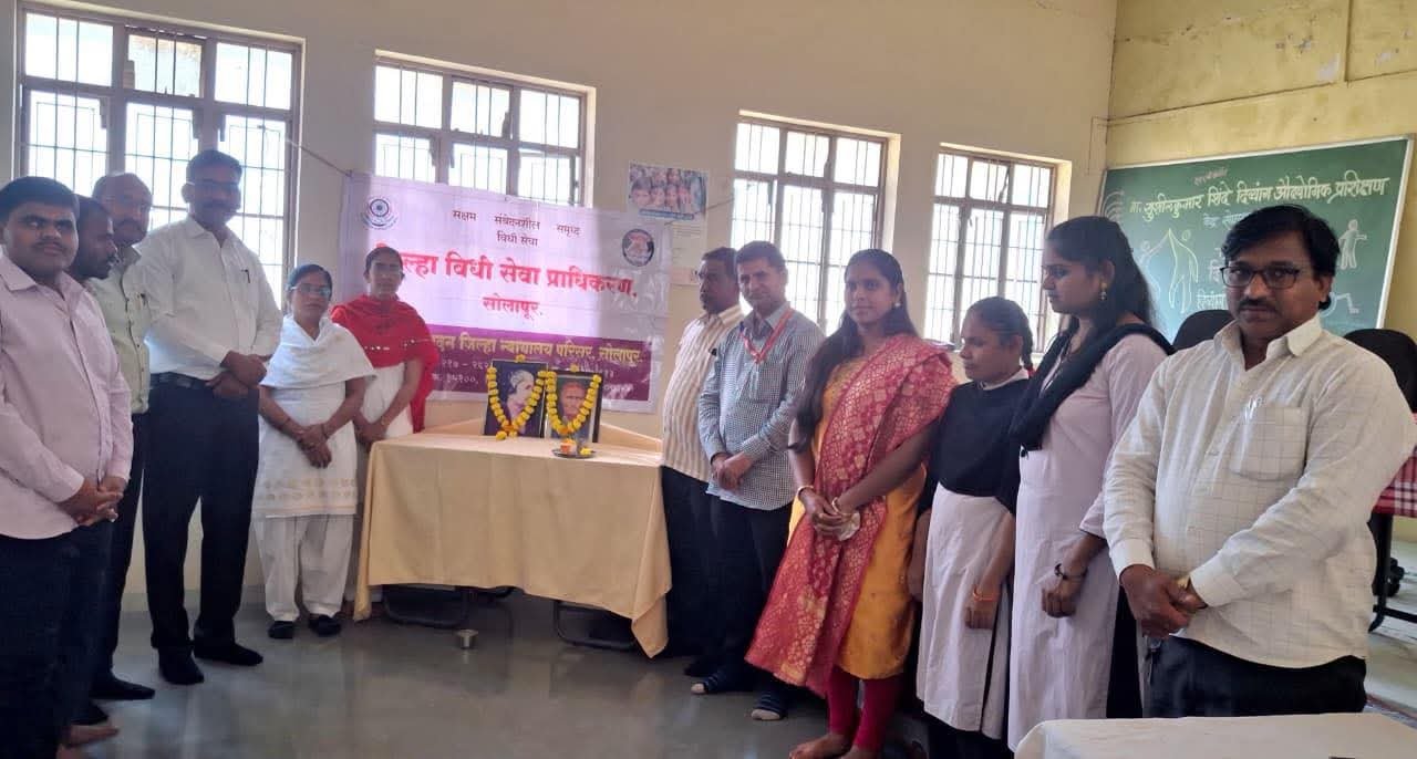 सोलापूर :- आंतरराष्ट्रीय दिव्यांग दिनानिमित्त महाराष्ट्र राज्य विधी सेवा प्राधिकरणाच्या मार्गदर्शक सूचनांनुसार जिल्हा विधी सेवा प्राधिकरण, सोलापूर व एन.ए.बी. संचलित निवासी अंध कार्यशाळा यांच्या संयुक्त विद्यमाने दिव्यांगांसाठी कायदेविषयक जनजागृती शिबिराचे आयोजन करण्यात आले.
