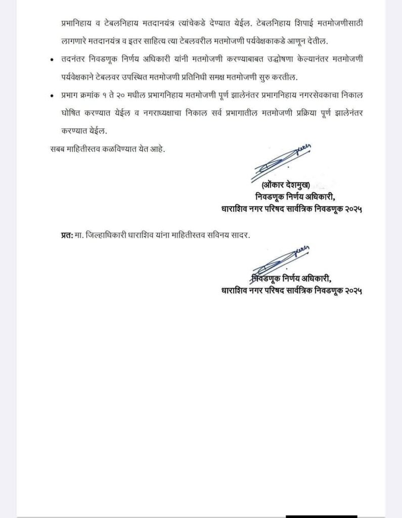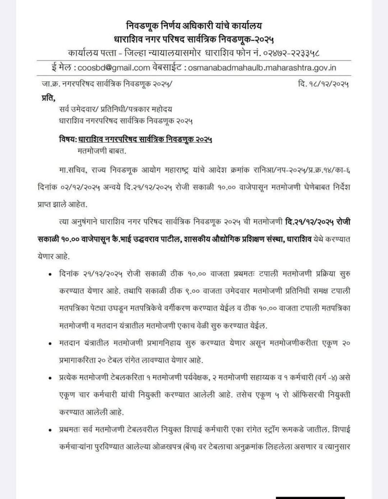 धाराशिव नगरपरिषदेची अशी होणार मतमोजणी; नेमकं कसं आहे नियोजन.