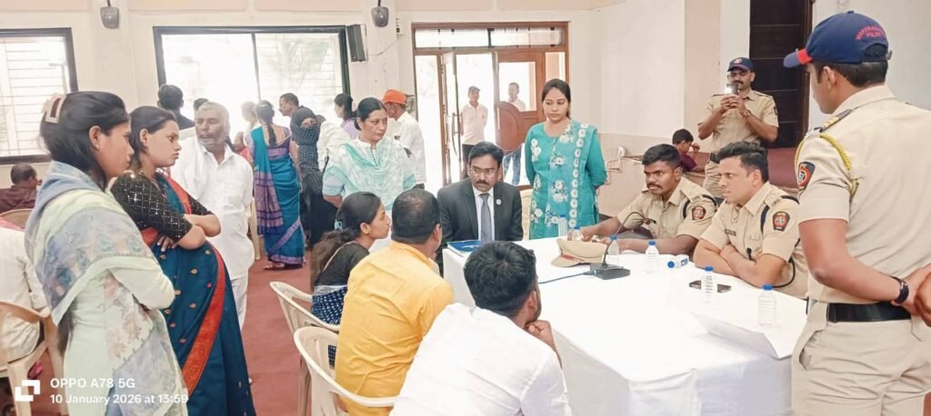 श्री. अतुल वि.कुलकर्णी, पोलीस अधीक्षक, सोलापूर ग्रामीण यांच्या कल्पनेतुन सोलापूर ग्रामीण घटकाअंतर्गत येणा-या नागरिकांचे तक्रारांचे निराकरण करण्याकरीता सोलापूर ग्रामीण पोलीस दलातील अलंकार हॉल पोलीस मुख्यालय येथे जनता दरबाराचे आयोजन केले होते. सकाळी १०.०० वा.ते संध्याकाळी ०५.०० वाजेपर्यंत ग्रामीण भागातील तक्रारदार यांची समक्ष भेट घेण्याकरीता पोलीस प्रमुख श्री. अतुल वी कुलकर्णी स्वतः उपस्थित होते. पोलीस अधीक्षक यांनी उपस्थित नागरिकांच्या तक्रारी समोरा समोर ऐकून घेतल्या. नागरिकांच्या तक्रारीचे निरासन करण्यासाठी श्री. राहुल आत्राम सर, भापोसे परिविक्षाधीन पोलीस अधीक्षक, सोलापूर ग्रामीण यांचेसह श्री. संकेत देवळेकर एस.डी.पी.ओ. सोलापूर उपविभाग, असे अधिकारी उपस्थित होते. उपस्थित नागरिकांच्या तक्रारीचे दखल घेवून जागीच निराकरण करण्याकरीता संबंधित पोलीस ठाणेचे पोलीस अधिकारी व अंमलदार उपस्थित होते, जनता दरबार दरम्यान ग्रामीण घटकातील महिलांच्या विषयीच्या तक्रारीचे निरसन करण्यासाठी भरोसा सेल, महिला शाखा देखील उपस्थित होते. महिलांच्या कौटुंबिक तक्रारींच्या निराकरण करणे दरम्यान सुमारे ६५ नागरिक उपस्थित होते.