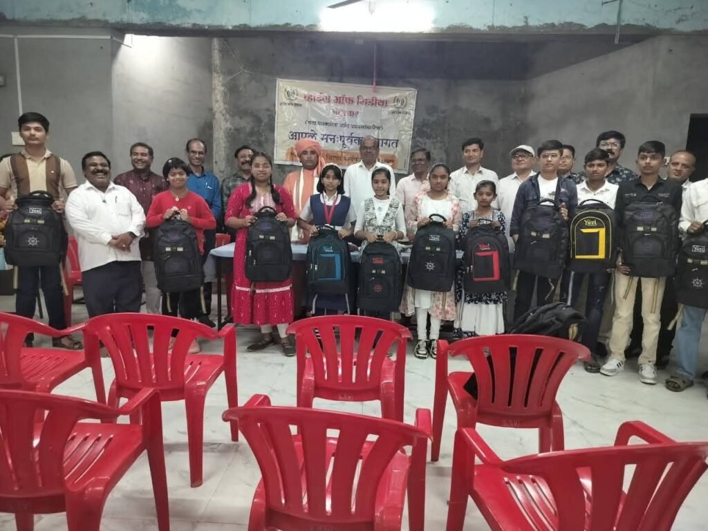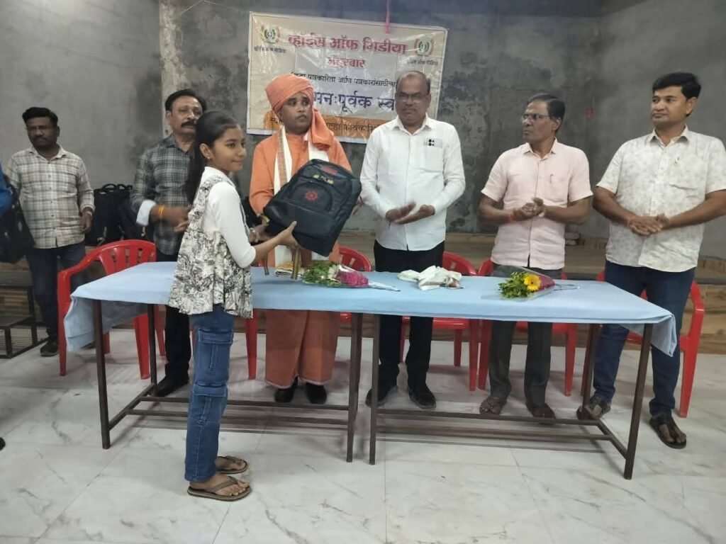 येथील व्हॉईस ऑफ मीडियातर्फे पत्रकारांच्या पाल्यांना शैक्षणिक साहित्याचे किट वाटप करण्यात आले.