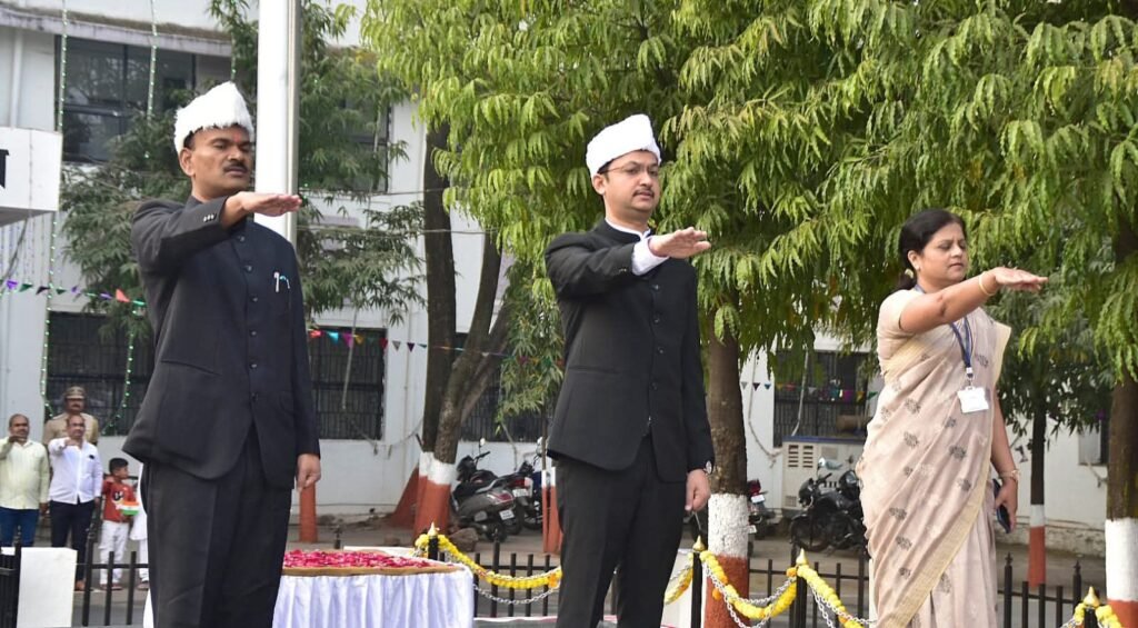 जिल्हाधिकारी कीर्ती किरण पुजार यांच्या हस्ते ध्वजारोहण