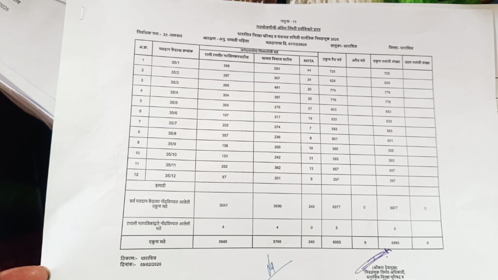 ढोकी जिल्हा परिषद गट – शिवसेना उबाठा गट तीर्थराज घाडगे 1168 मतांनी विजयी