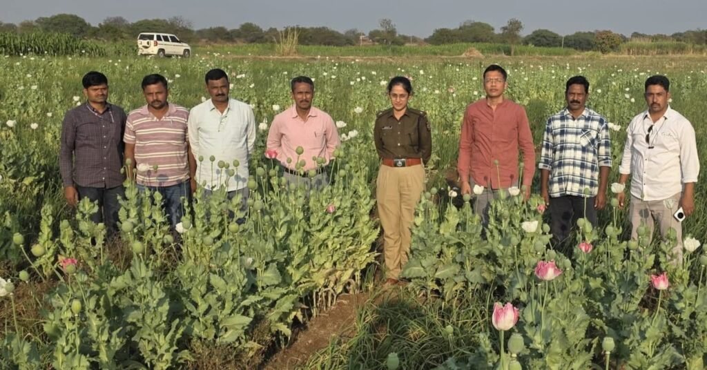 सदर बातमीची खात्री करण्याकरीता सर्वे क्र १६३, मौजे दशमेगाव, ता वाशी जि धाराशिव येथे भेट दिली असता तेथे कांदयाच्या आंतरपिकात मोठ्या प्रमाणात अफूची लागवड केली असल्याचे दिसून आले. नमुद अफुच्या झाडांना पांढरी गुलाबी रंगाची फुले तसेच मोठी बोंडे असल्याचे दिसून आले. सदरचे शेल हे समाधान मनोहर उघडे, रा दशमेगाव, ता वाशी जि धाराशिव यांचे असून त्यानेच सदर अफुची लागवड केली असल्याचे आजूबाजुच्या शेतक-यांनी सांगितले. त्यानंतर स्थानिक गुन्हे शाखा, धाराशिव यांनी केलेल्या कारवाईमध्ये समाधान मनोहर उघडे, रा दशमेगाव, ता वाशी जि धाराशिव याचे शेतातून एकूण ४८५.६५ किलो वजनाची पांढरी गुलाबी रंगाची फुले तसेच मोठी बोंडे असलेली अफूची झाडे श्री किसन सांगळे नायब तहसीलदार, वाशी, ०२ शासकीय पंच यांचे उपस्थितीत जप्त करण्यात आली आहेत. सपोनि सुदर्शन कासार यांनी सरकारतर्फे दिलेल्या फिर्यादीवरून समाधान मनोहर उघडे, रा दशमेगाव, ता वाशी जि धाराशिव याचे विरोधात विनापरवाना, स्वतःच्या फायदयाकरीता अफूची लागवड केली म्हणून पोस्टे वाशी गुरनं ४५/२०२६ क ८ (क) सह १८ एनडीपीएस कायदा १९८५ अन्वये गुन्हा दाखल करण्यात आला आहे.