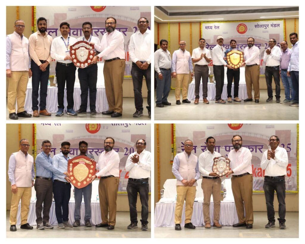 सोलापूर : मध्य रेल्वेच्या सोलापूर विभागाने १३ फेब्रुवारी २०२६ रोजी सिद्धेश्वर रेल्वे ऑफिसर्स क्लब ऑडिटोरियम हॉल, सोलापूर येथे ७० वा रेल्वे आठवडा २०२५ कार्यक्रम आयोजित केला होता. या प्रसंगी, सोलापूर विभागातील विभागीय रेल्वे व्यवस्थापक (डीआरएम), सोलापूर विभाग, डॉ. सुजीत मिश्रा यांनी सोलापूर विभागातील रेल्वे कर्मचाऱ्यांच्या अनुकरणीय योगदानाची दखल घेऊन रेल्वे सेवा पुरस्कार २०२५ प्रदान केला.