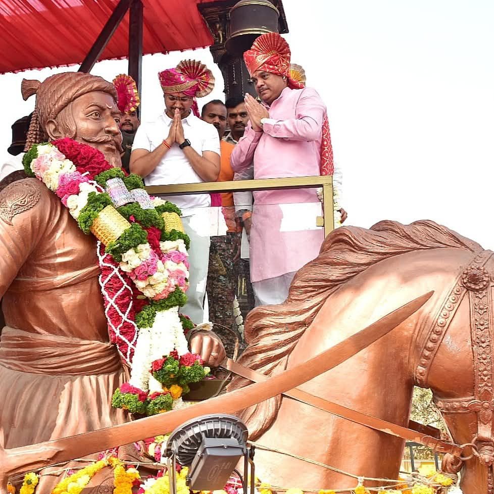 धाराशिव येथील छत्रपती शिवाजी महाराज चौक परिसरात आमदार राणाजगजितसिंह पाटील, जिल्हाधिकारी किर्ती किरण पूजार, जिल्हा परिषदेचे मुख्य कार्यकारी अधिकारी डॉ.मैनाक घोष यांच्या हस्ते मंत्रोच्चारात दुग्धाभिषेक करण्यात आला.यानंतर छत्रपती शिवाजी महाराज यांच्या अश्वारूढ पुतळ्यास पुष्पहार अर्पण करून अभिवादन करण्यात आले.या प्रसंगी परिसरात जयघोष आणि उत्साहाचे वातावरण निर्माण झाले होते.