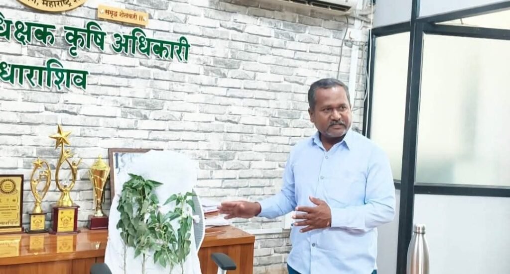धाराशिव : जिल्ह्यात खत उपलब्ध असूनही शेतकऱ्यांना प्रत्यक्षात खत मिळत नसल्याच्या आरोपावरून शेतकरी पुत्र मनोज जाधव यांनी जिल्हा परिषद येथील जिल्हा कृषी विकास अधिकारी व सेंट्रल बिल्डिंगमधील जिल्हा कृषी अधीक्षक यांच्या विरोधात अनोखे आंदोलन छेडले. संबंधित अधिकाऱ्यांच्या रिकाम्या खुर्च्यांवर बेशरमाचा फाटा ठेवत त्यांनी निषेध नोंदवला.