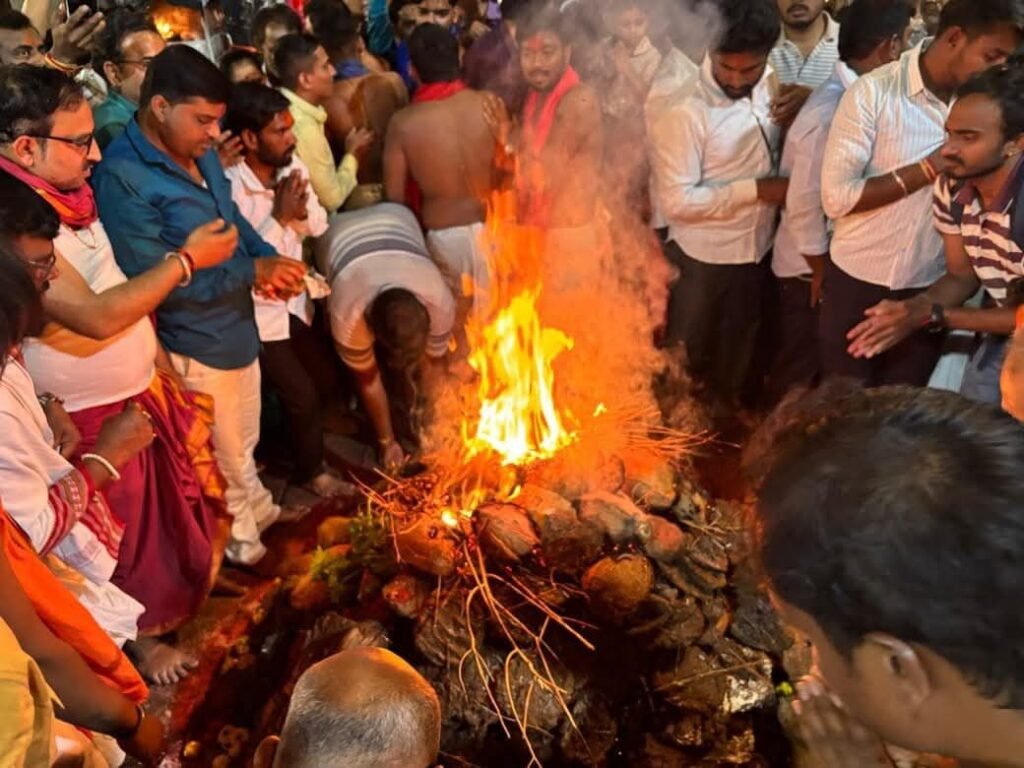 तुळजापूर : हुताशनी पौर्णिमेनिमित्त श्री तुळजाभवानी मंदिरात पारंपरिक पद्धतीने होलिकादहनाचा सोहळा उत्साहपूर्ण वातावरणात संपन्न झाला. मंदिर परिसरातील होमकुंडासमोर विधीवत होळी पूजन करण्यात आले असून भाविकांनी मोठ्या श्रद्धेने सहभाग नोंदवला.