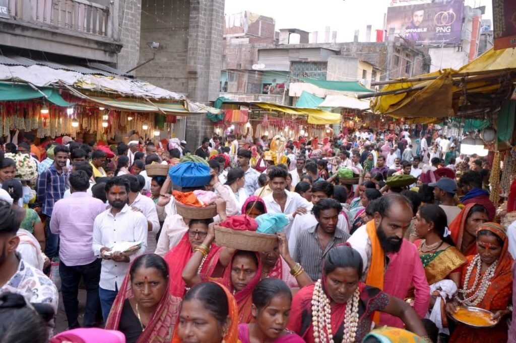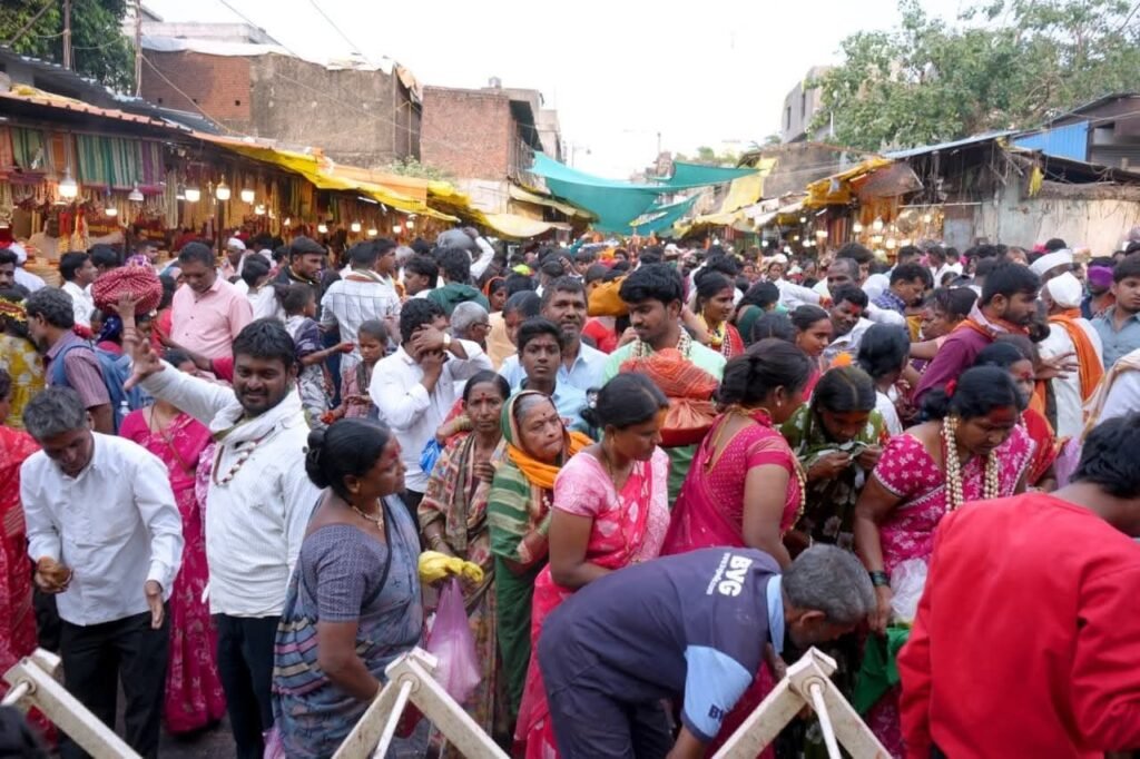 तुळजापूर : महाराष्ट्राची कुलस्वामिनी आई श्री तुळजाभवानी देवीच्या चैत्र पौर्णिमा यात्रेनिमित्त तुळजापूर नगरीत भक्तीचा जनसागर लोटला आहे. ‘आई राजा उदो उदो’च्या गगनभेदी जयघोषात तुळजाभवानी नगरी अक्षरशः न्हाऊन निघाली आहे. यात्रेचा मुख्य दिवस उद्या गुरुवारी असून आज पाच लाखांहून अधिक भाविकांनी तुळजापुरात हजेरी लावली असून, मंदिर परिसर भाविकांच्या गर्दीने फुलून गेला आहे.